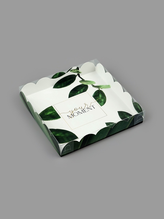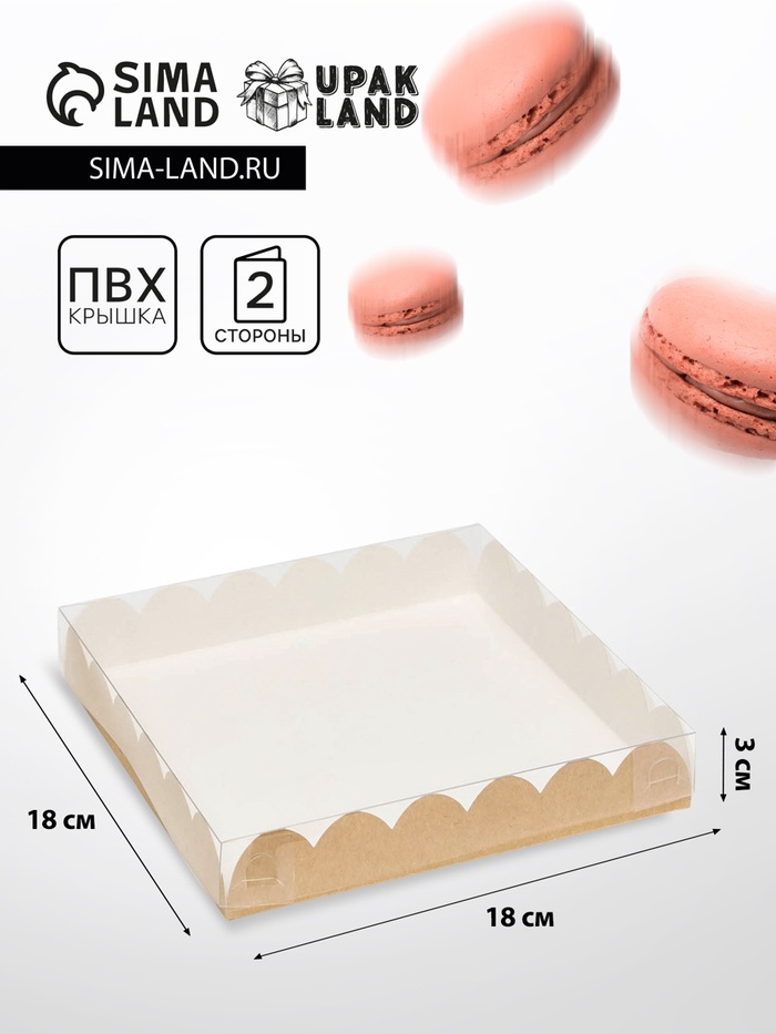 Коробка для печенья, кондитерская упаковка с пластиковой крышкой, «Эко», 18 х 18 х 3 см
