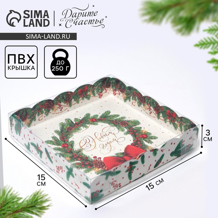Коробка для кондитерских изделий с пластиковой крышкой «Время исполнения желаний», 13 х 13 х 3 с