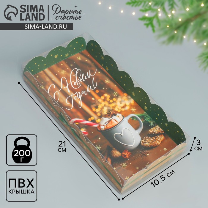 Коробка для кондитерских изделий с пластиковой крышкой «С Новым годом», 10.5×21×3 см