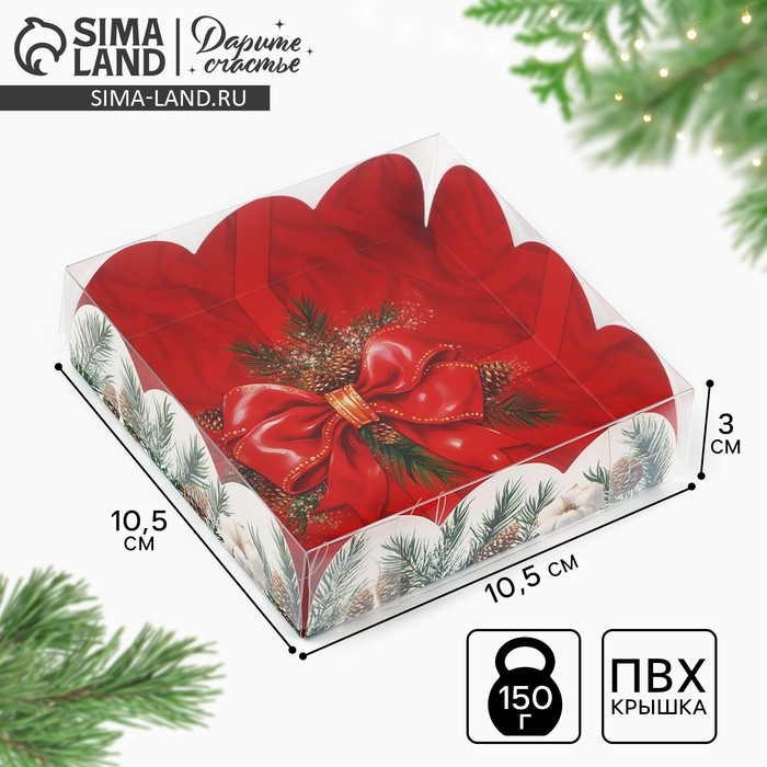 Коробка для кондитерских изделий с пластиковой крышкой «С Новым годом!», бант, 10.5 х 10.5 х 3 см