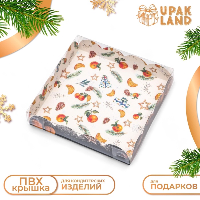 Коробка для печенья, «Мандарины», 15×15×3 см, Новый год