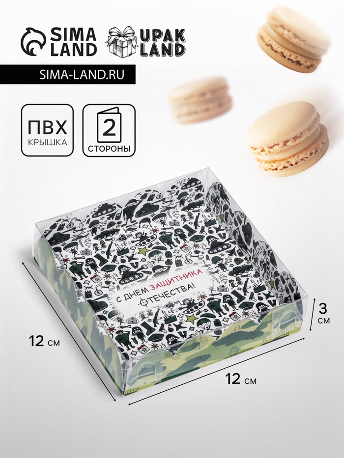 Коробка для печенья, «С Днем защитника Отечества» 12×12×3
