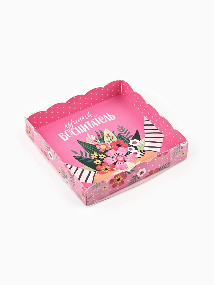 Коробка для печенья, кондитерская упаковка с пластиковой крышкой, «Лучший воспитатель», 15 х 15 х 3 см