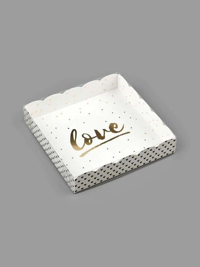 Коробка для печенья, кондитерская упаковка с пластиковой крышкой, Love, тиснение, 15 х 15 х 3 см