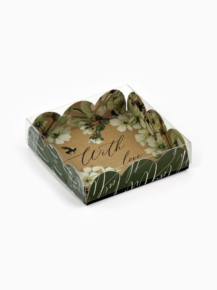 Коробка для печенья, кондитерская упаковка с пластиковой крышкой, «С Любовью», 10.5 х 10.5 х 3 см