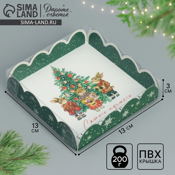 Коробка для кондитерских изделий с пластиковой крышкой «Зайчики», 13 х 13 х 3 см