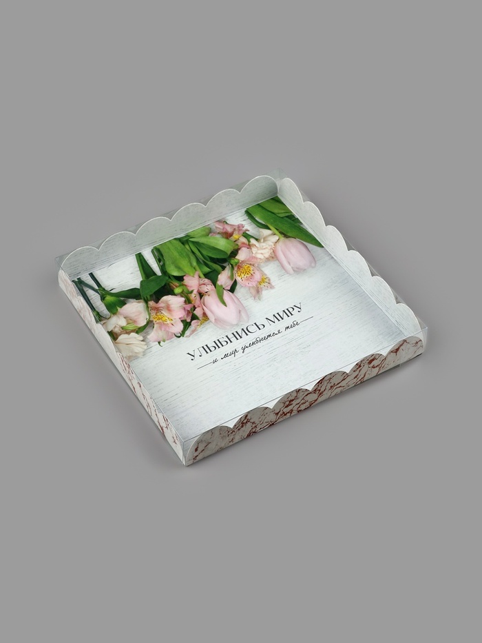 Коробка для печенья, кондитерская упаковка с пластиковой крышкой, «Улыбнись миру», 21 х 21 х 3 см