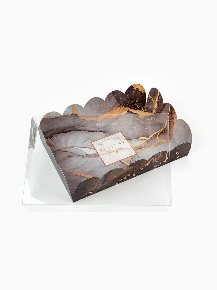 Коробка для печенья, кондитерская упаковка с пластиковой крышкой, «Мрамор», 20 х 30 х 8 см