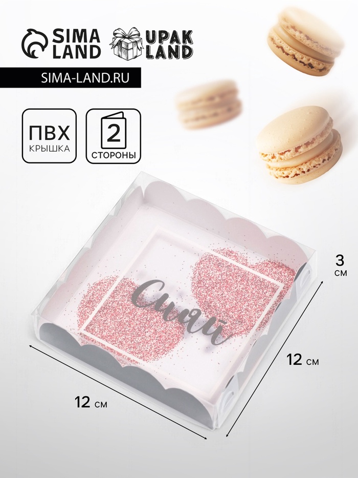 Коробка для печенья, кондитерская упаковка с пластиковой крышкой, With love, 15 х 15 х 3 см