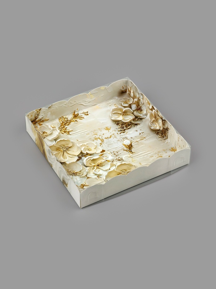 Коробка для кондитерских изделий с пластиковой крышкой «Золото», 15 х 15 х 3 см