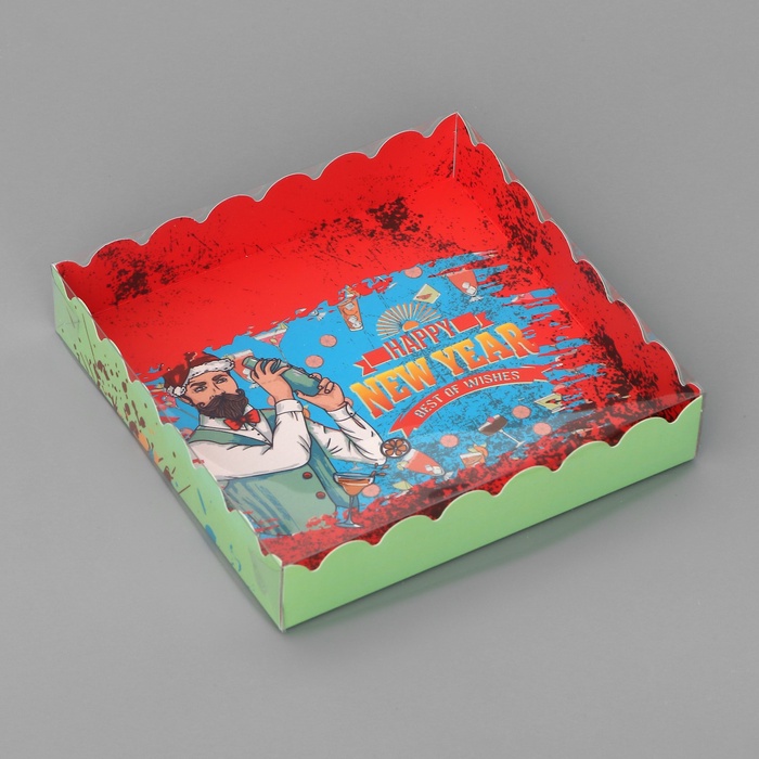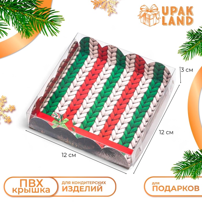 Коробка для кондитерских изделий с пластиковой крышкой «Новый год», 13 х 13 х 3 см