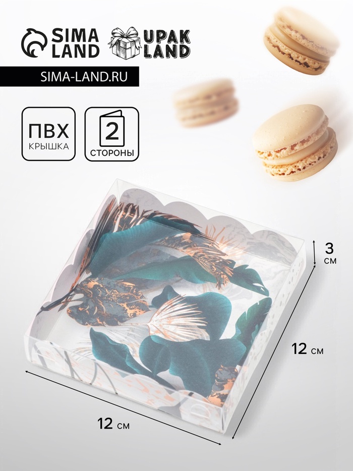 Коробка для печенья, кондитерская упаковка с пластиковой крышкой, Just for you, 10.5 х 10.5 х 3 см