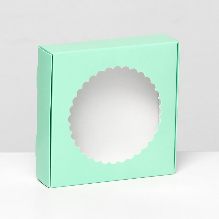 Подарочная коробка сборная с окном, зелёный, 11.5×11.5×3 см