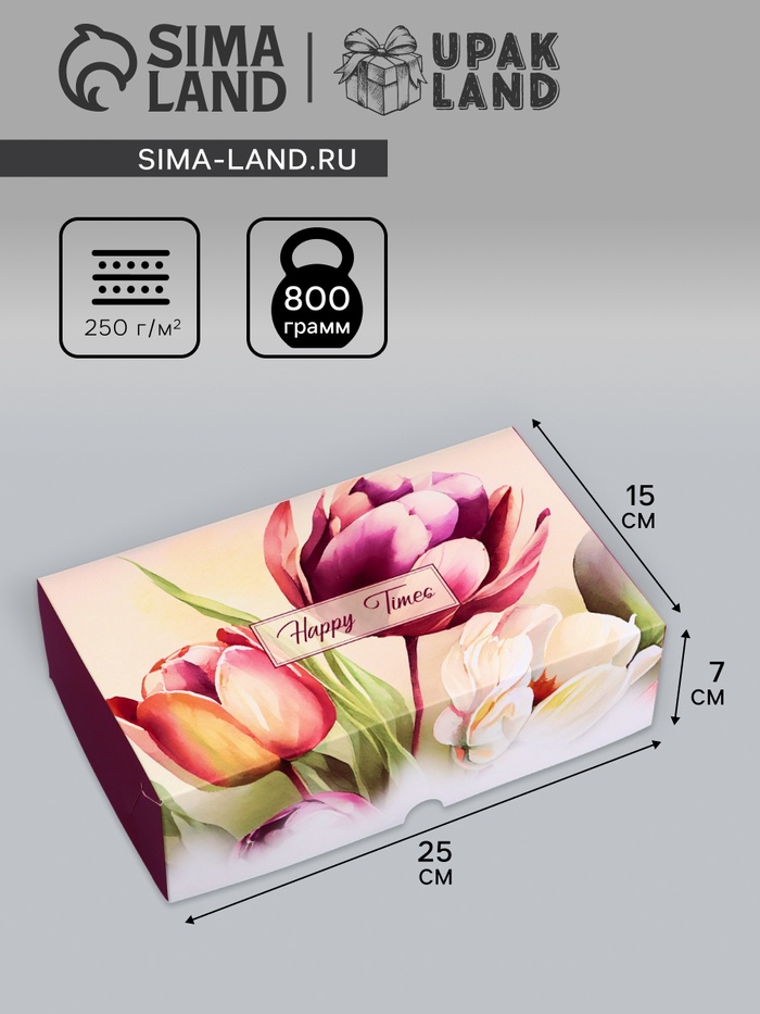 Коробка подарочная складная без окна, упаковка, «Тюльпаны», 25×15×7 см