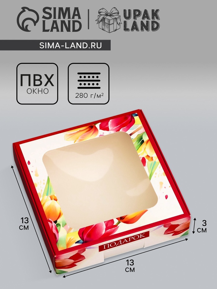 Коробка подарочная сборная с окном, упаковка, « С 8 марта», 13×13×3 см