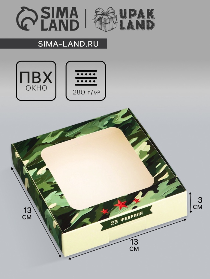 Коробка подарочная сборная с окном, упаковка, «С днем защитника Отечества», 11.5×11.5×3 см