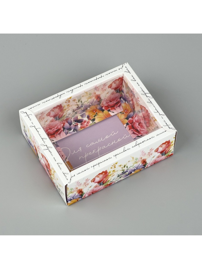 Коробка складная с пластиковой крышкой «Цветочные грёзы», 11.5 х 9 х 4 см