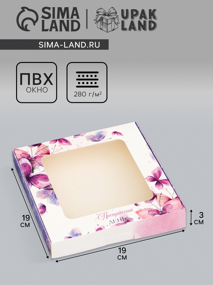 Коробка подарочная сборная с окном, упаковка, «Бабочки», 19×19×3 см