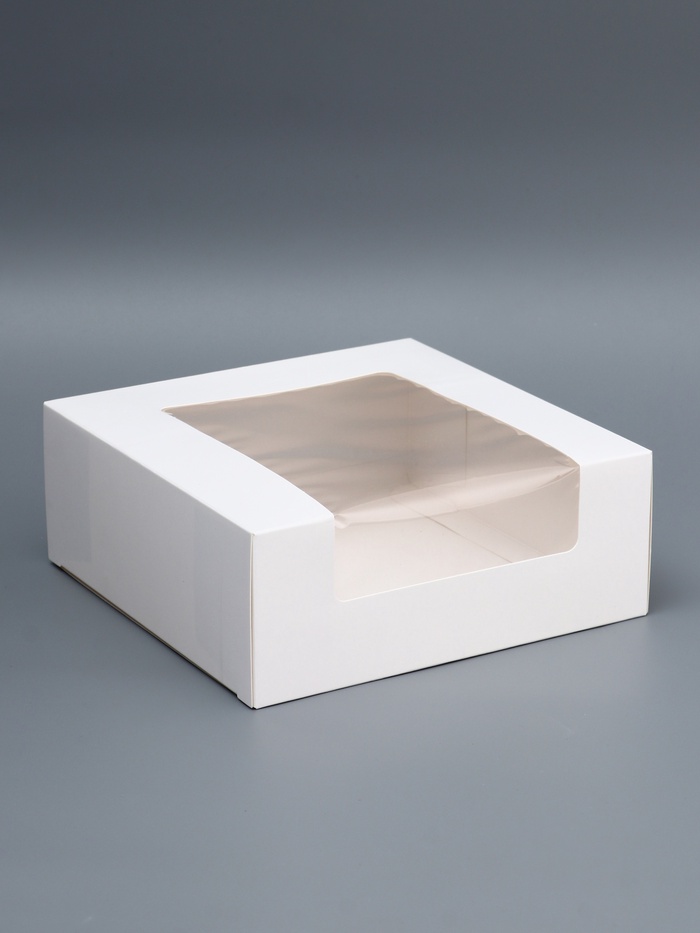 Кондитерская упаковка с окном, белая, 18×18×7 см