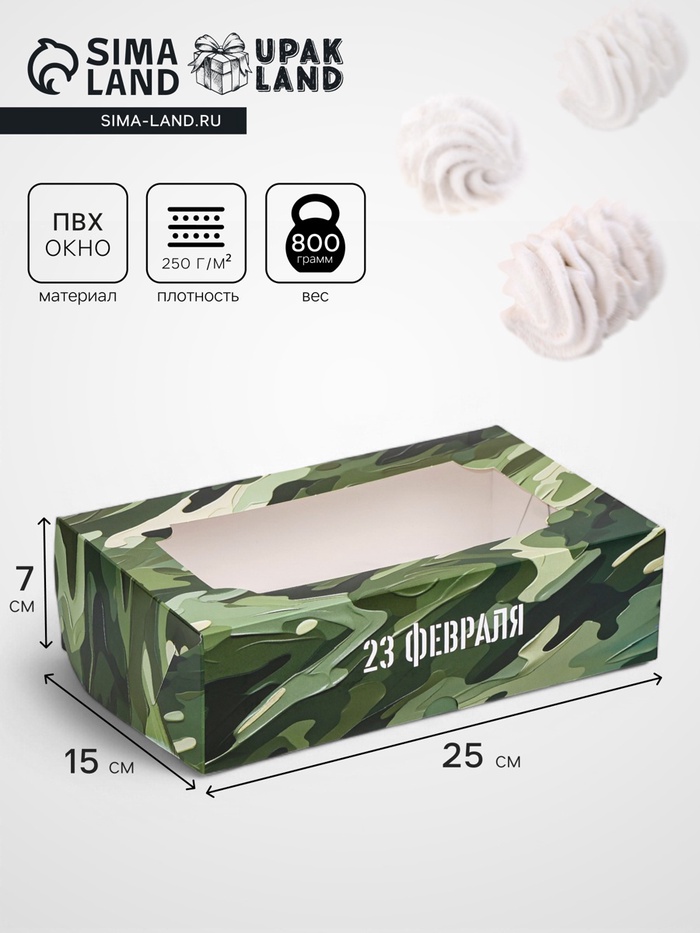 Коробка складная с окном под зефир «С 23 февраля», 25×15×7 см