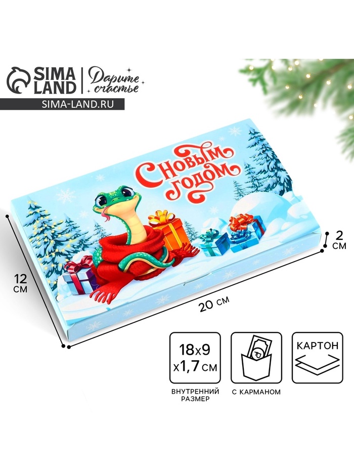 Коробка для шоколада с местом для денег «С Новым годом», 20×2×10 см