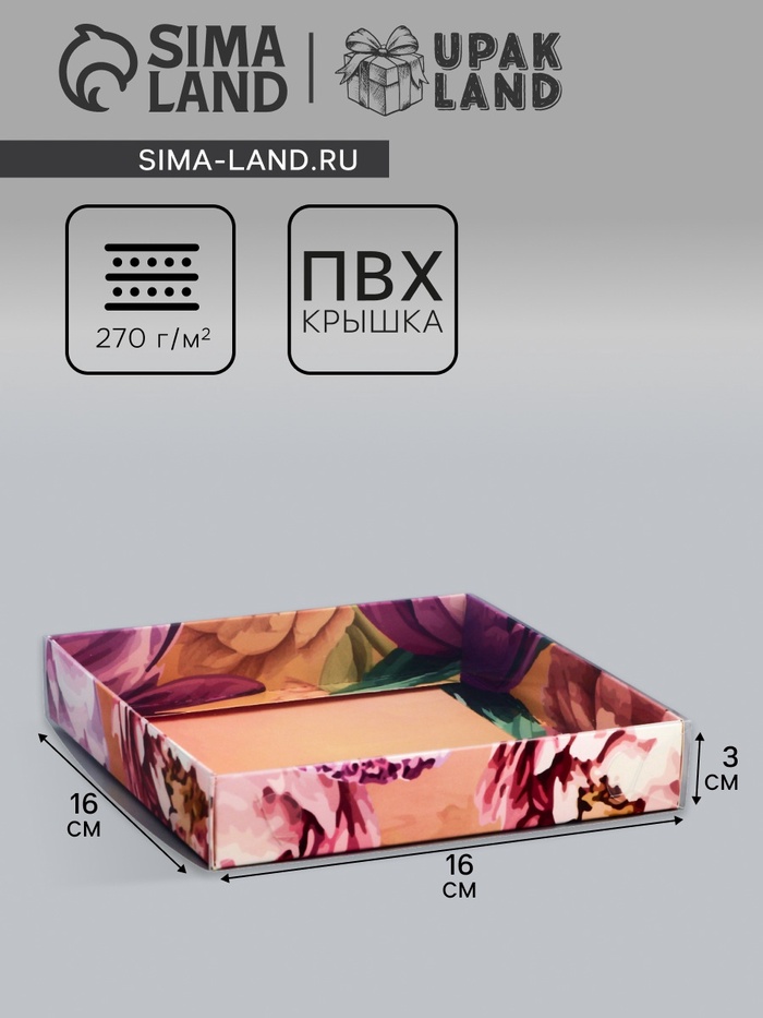 Коробка сборная с PVC крышкой, «Подарок для тебя», 16×16×3 см