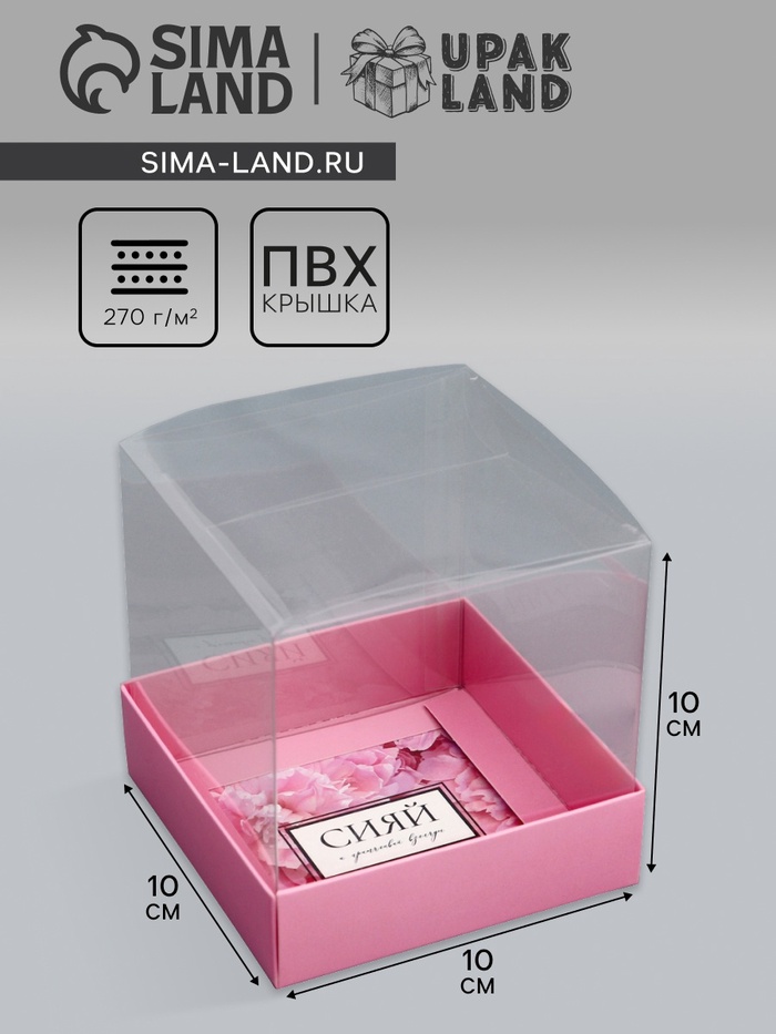 Коробка сборная с PVC крышкой, «Сияй от счастья», 10×10×10 см
