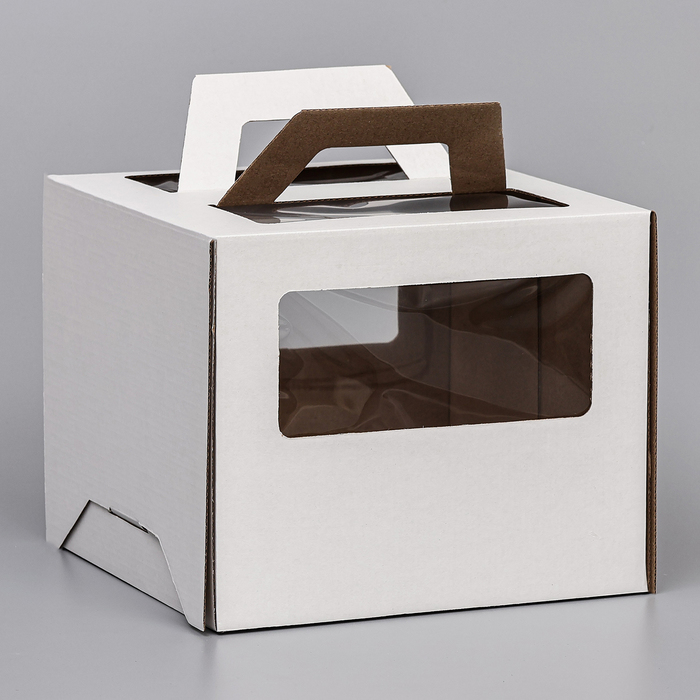 Коробка под торт 2 окна, с ручками, белая, 24×24×20 см