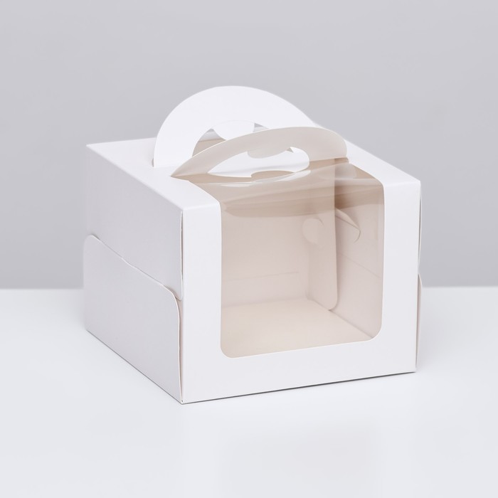 Коробка под торт 2 окна, с ручками, белая, 23 х 23 х14 см