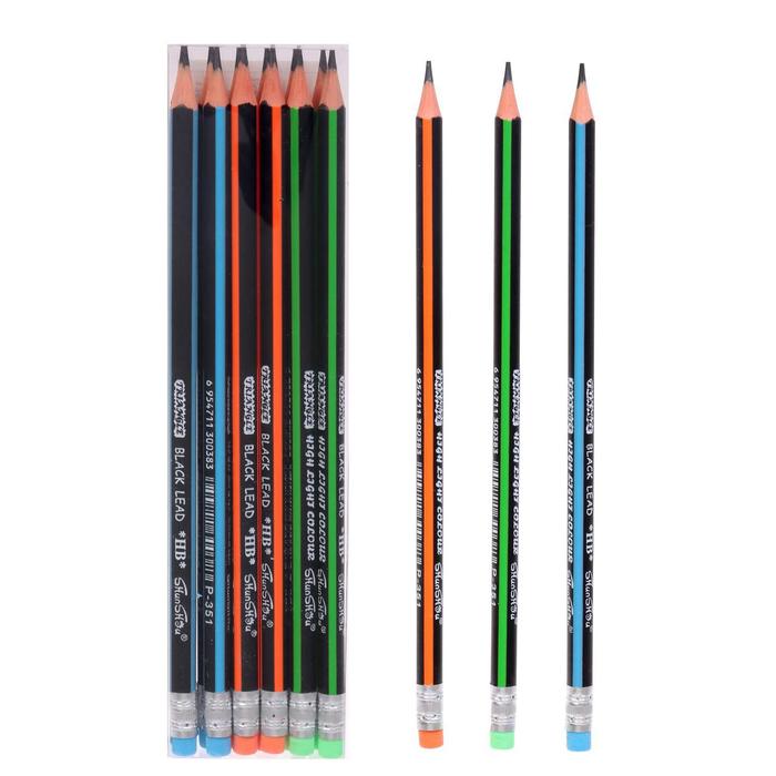 Карандаш простой, чернографитный с ластиком, твёрдость НВ, корпус чёрный с цветным узором