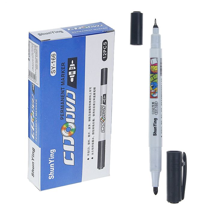 Маркер двухсторонний для CD/DVD, диаметр узла 0.7/2.0 мм, чёрный
