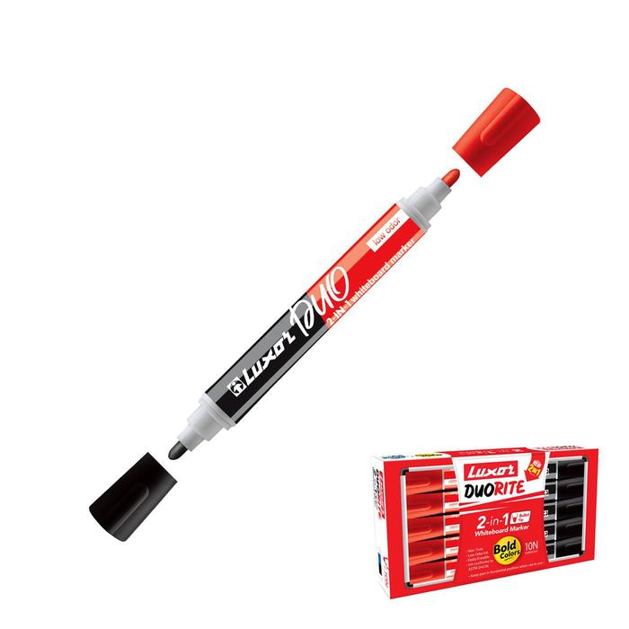 Маркер для белых досок Luxor Duorite, 1-3 мм, двусторонний, пулевидный, чёрный/красный