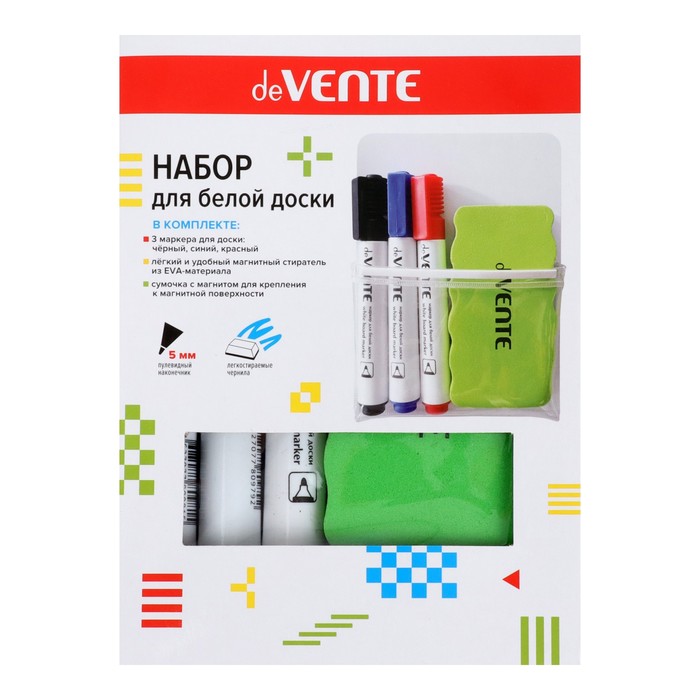 Набор маркеров для доски 3 цвета, 5,0 мм, deVENTE, с губкой