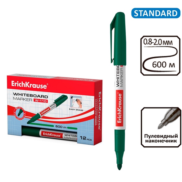 Маркер для доски, 2,0 мм, ErichKrause W-110, круглый, зелёный