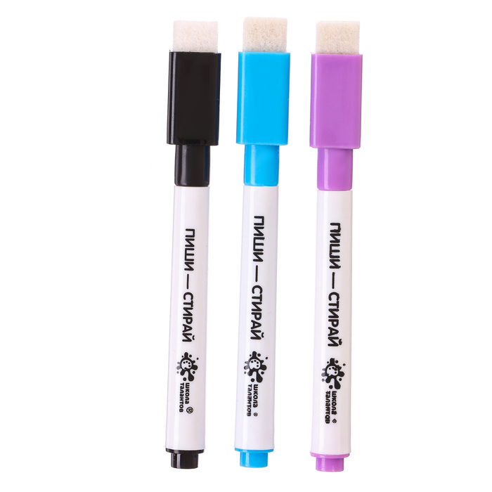 Маркеры цветные «Пиши — Стирай», на водной основе, с магнитом и губкой, набор 3 шт.