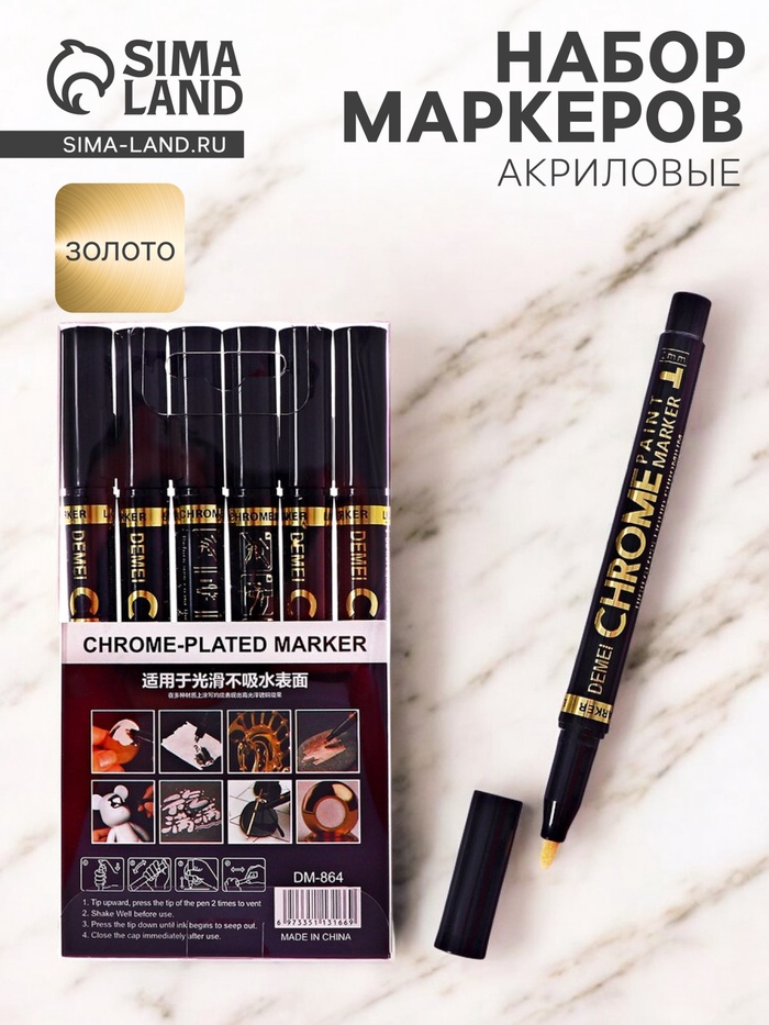 Маркер-краска (хром) наконечник пулевидный 4 мм, золото