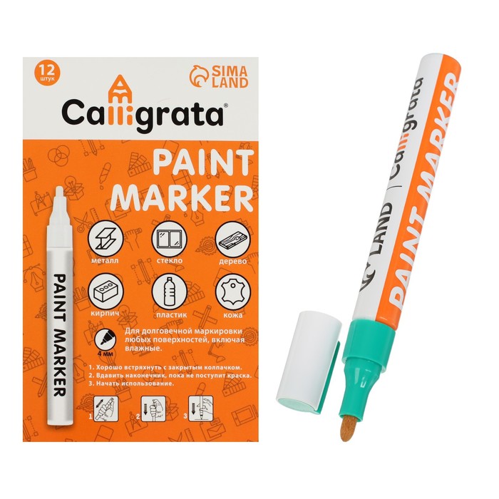 Маркер-краска, лаковый наконечник, пулевидный 4 мм, ширина линии 2.5 мм, зеленая, цена за 1 штуку