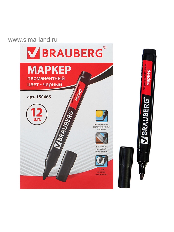 Маркер перманентный 3.0 мм BRAUBERG Contract, чёрный, нестираемый