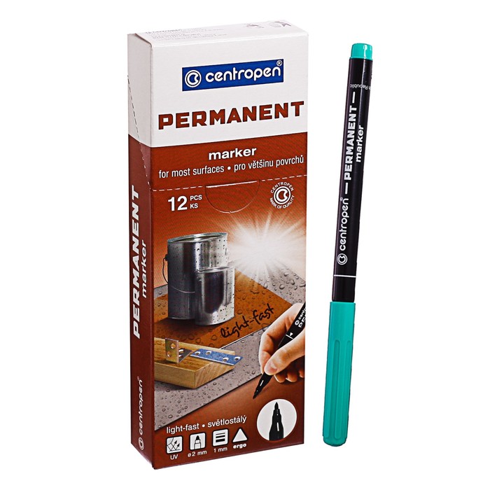 Маркер перманентный 2.0 мм Centropen 2536, линия 1мм, цвет зелёный, светостойкий