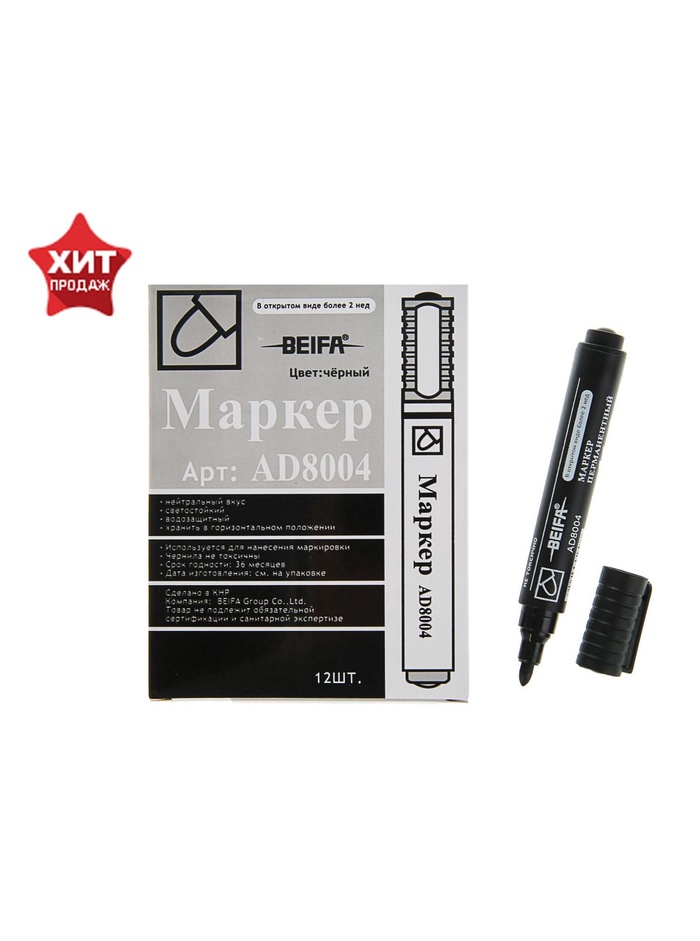 Маркер перманентный Beifa Office, 2.0 мм, чёрный