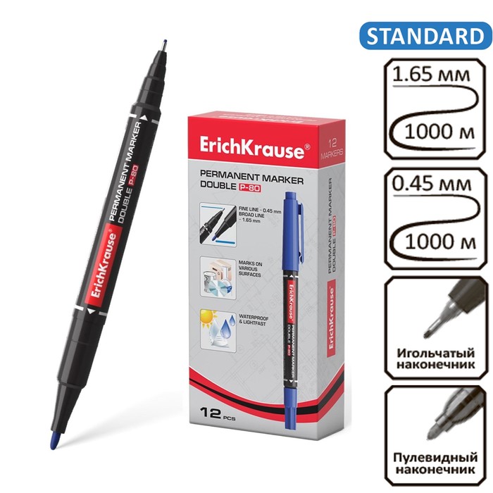 Маркер перманентный ErichKrause Double P-80, 0.45-1.65 мм, двусторонний, синий