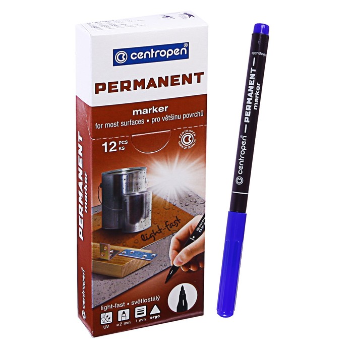 Маркер перманентный 2.0 мм Centropen 2536, линия 1мм, цвет синий, светостойкий