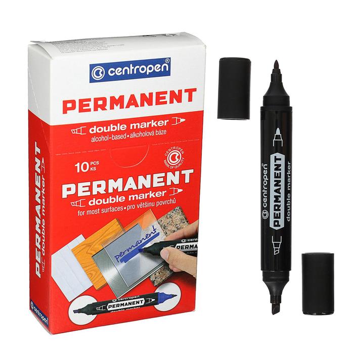 Маркер перманентный двусторонний Centropen 1666/12 черный, пулевидный/скошенный, 2.5/ 4.0 мм