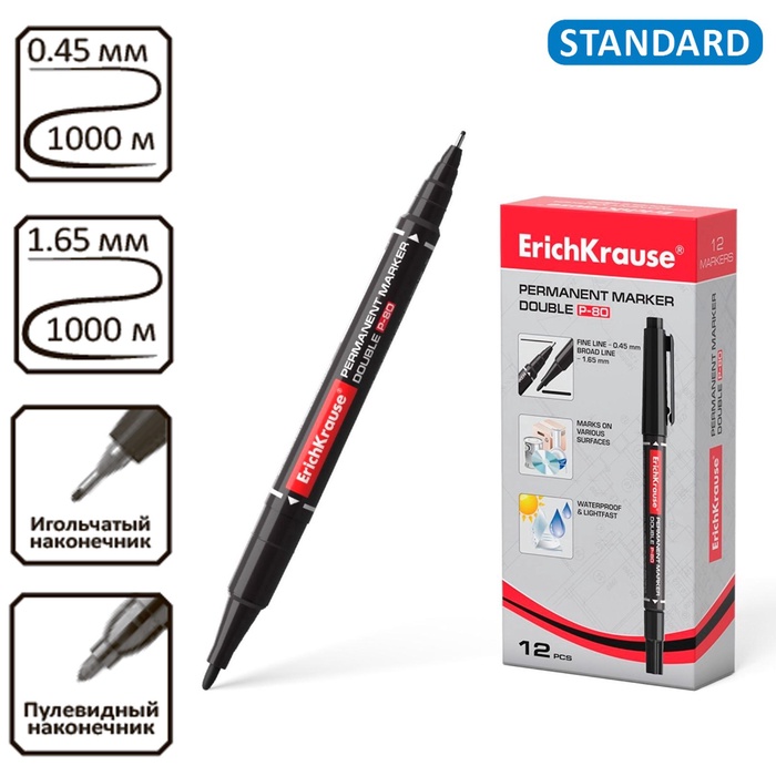 Маркер перманентный ErichKrause Double P-80, двусторонний, чёрный
