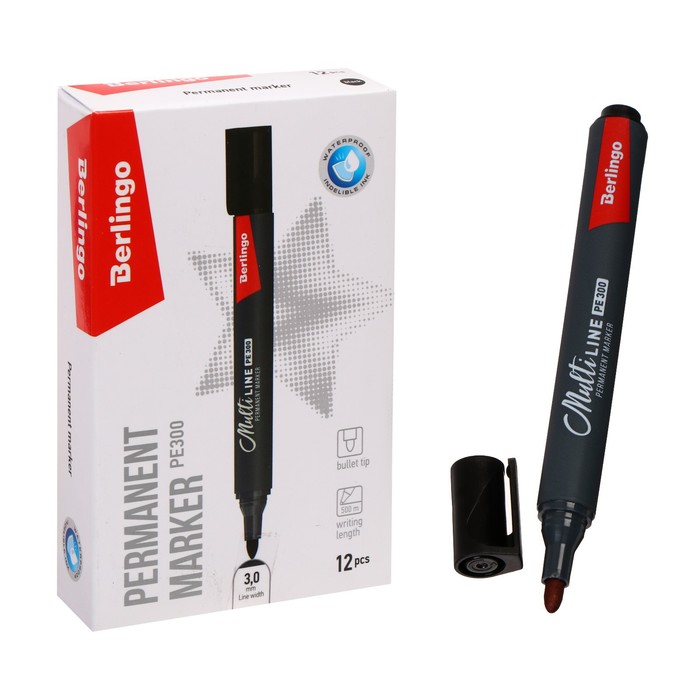 Маркер перманентный 3.0 мм, Berlingo Multiline PE300, пулевидный, черный