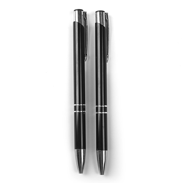 Ручка шариковая, автоматическая, 0.5 мм, круглая, чёрная с серебристыми вставками, металлический корпус, стержень синий