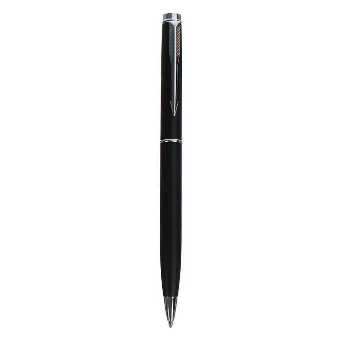 Ручка шариковая, синяя паста, рифленая, корпус чёрный с золотом, металл, 0.1 мм