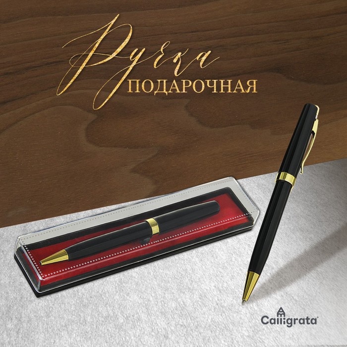 Ручка подарочная, шариковая «Роскошь» в пластиковом футляре, поворотная, чёрная с золотистыми вставками