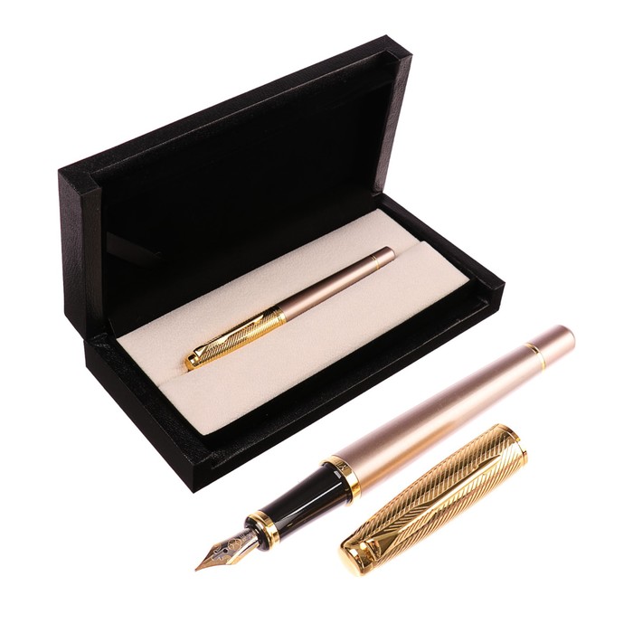 Ручка подарочная, перьевая, в кожзам футляре, "Венесуэла", корпус бежевый/золотистый