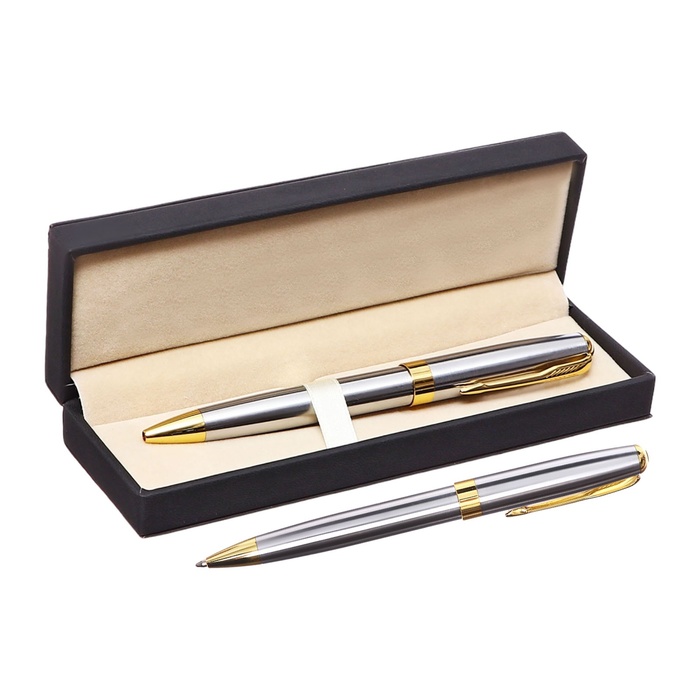 Ручка подарочная, шариковая «Классика» в кожзам футляре, поворотная, корпус серебро с золотым